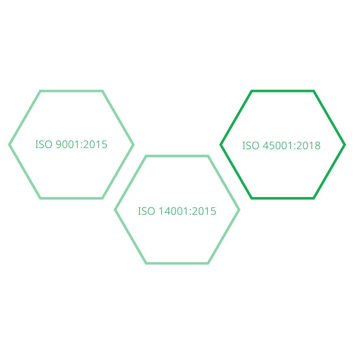 We are very proud to be certified under the following international standards, which reflect our unwavering commitment to excellence: ISO 9001:2015 for Quality Management Systems, ISO 14001:2015 for Environmental Management Systems, and ISO 45001:2018 for Occupational Health and Safety Management Systems.